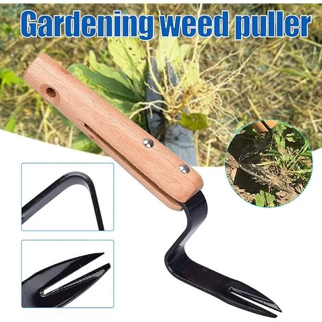 Facile à utiliser: Cet outil de désherbage de jardinage avec une fourche en forme de V étroite peut être facilement insérer dans le sol autour des racines et appuyer sur la poignée pour extraire facilement les racines des mauvaises herbes.