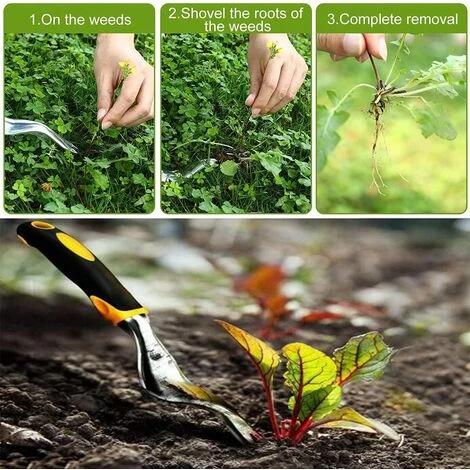 Avantage : notre désherbeur à main est un excellent outil pour éliminer les mauvaises herbes du sol. Parfait pour arracher et enlever les chardons, les pissenlits, la digitaire, la stellaire moyenne et d’autres mauvaises herbes communes du jardin sans déranger la zone environnante.