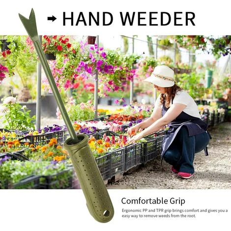 Prise en main confortable : la poignée ergonomique en polypropylène et TPR apporte du confort et vous offre un moyen facile d’enlever les mauvaises herbes de la racine.