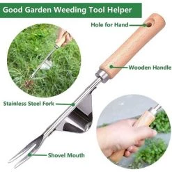LTS FAFA Désherbeur Manuel Outil Gouge De Désherbage En Acier Inoxydable Avec Poignée Bois