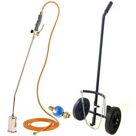 L’ensemble comprend un brûleur de 60 mm de diamètre relié à un tuyau de 5m de longueur et à un détendeur.