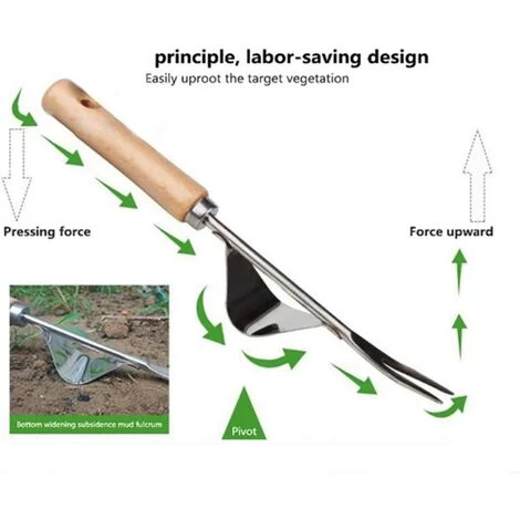 L’arrache-herbe manuel est conçu avec une poignée en bois ergonomique et confortable, ce qui provoque moins de fatigue et rend le jardinage facile et intéressant.