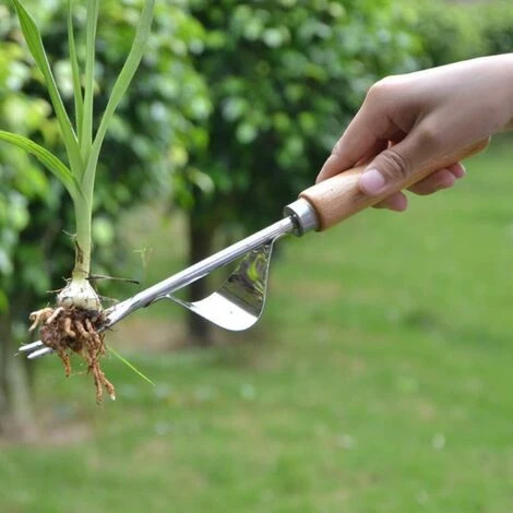Outil de jardin de désherbeur à main en acier inoxydable 2 avec manche en bois à prise facile