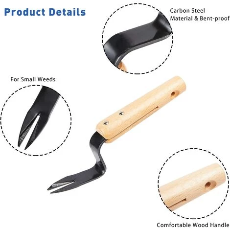 Matériau de qualité: les fourches en acier au carbone et la poignée en bois rendent le désherbeur beaucoup plus durable et résistant à la flexion, peut s’attaquer facilement aux pissenlits et autres mauvaises herbes tout en laissant bien la plante environnante, outil pratique.