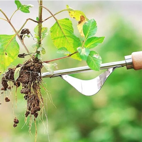 Matériaux de haute qualité : les outils de désherbage manuel sont fabriqués à partir dacier inoxydable plié de haute qualité, dacier poli et de poignées en bois, difficiles à casser ou à déformer, résistants à la rouille et durables.
