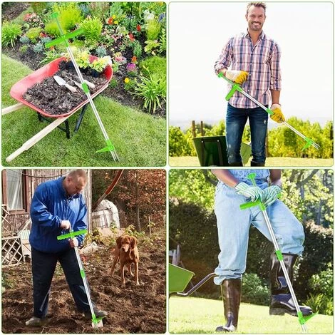 Les tondeuses à gazon à long manche vous permettent de vous tenir debout sans vous pencher ni vous agenouiller. Placez-le simplement sans effort sur les plantes ou les mauvaises herbes indésirables, plantez les griffes dans le sol et faites pivoter l’outil à 360° pour desserrer les racines de l’herbe et le soulever. Les mauvaises herbes peuvent facilement quitter la pelouse.