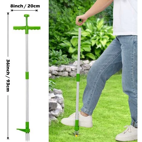 【Facilité d’utilisation】 Une fois que vous avez commencé, vous ne voudrez plus vous arrêter. Pour arracher les mauvaises herbes, commencez en position debout, enfoncez la griffe en acier au centre des mauvaises herbes, tournez la poignée pour l’enlever, puis tirez sur la poignée supérieure pour desserrer la plante. Aussi simple que cela!