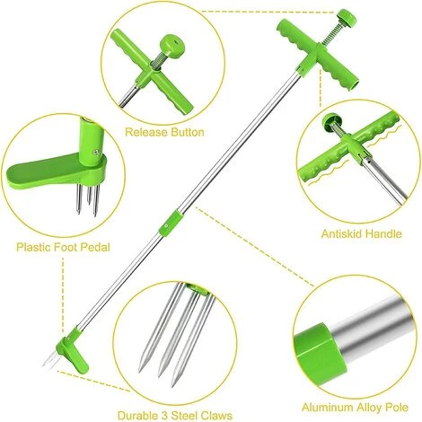 【Matériau léger renforcé】 L’outil de désherbage offre l’équilibre parfait entre facilité d’utilisation et durabilité, dispose d’un arbre en alliage d’aluminium léger renforcé pour un levage facile, d’une griffe en acier inoxydable qui ne rouille pas et d’une pédale renforcée pour vous aider à entrer dans le dur creuser la terre pour récupérer les mauvaises herbes.