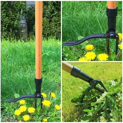 Facile à utiliser : alignez l’outil d’extraction des racines, commencez en position verticale, insérez la griffe au centre de la mauvaise herbe, marchez dessus facilement avec votre pied, puis tournez la poignée pour l’extraire.