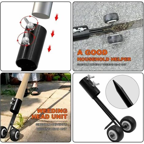 Outil de désherbage à crochet, outil de désherbage de jardin avec désherbeur à roue, outil de désherbage de jardin, outil de désherbage pour nettoyer sans s’agenouiller entre les planches, les blocs, le pavage, la pelouse de la courUne bonne aide domestique : petite, facile à ranger et transporter, ne prend pas de place, moins de temps à désherber et plus de temps pour les activités que vous aimez. Pour les débutants, les outils de désherbage de jardin sont pratiques et faciles à utiliser. sans poignée ENLEVEZ LES MAUVAISES HERBES N’IMPORTE OÙ : n’importe où, un outil facile à utiliser qui élimine les mauvaises herbes des allées, des trottoirs, des patios, des terrasses et d’autres endroits que vous ne voulez pas utiliser, gardant votre maison propre et bien rangé.FACILE À UTILISER ET À INSTALLER : Le connecteur de l’outil de désherbage est réglable, il suffit de tourner la vis pour ajuster et fixer l’outil de désherbage, vous pouvez éliminer les mauvaises herbes de l’outil de désherbage de la cour, vous pouvez fixez facilement l’outil de désherbage à n’importe quelle poignée (poignée non incluse) ce que vous voulez.Mode d’emploi : le désherbeur est en fer, pèse 300 grammes et a un diamètre intérieur de 29 mm. Il est facile à utiliser, placez-le simplement sur une crevasse infestée de mauvaises herbes ou une fissure dans votre allée et commencez à gratter ces mauvaises herbes. Il doit être utilisé avec un poteau approprié pour éviter de se pencher et de s’agenouiller, ce qui est plus pratique pour le désherbage de protection de l’environnement.