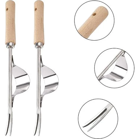 MEZHENG Désherbeur En Acier Inoxydable 2 Pièces Désherbeur Manuel Désherbeur À Main En Acier Inoxydable Désherbeur Manuel De Jardinage Outil De Désherbage En Forme De Y Pour Plantation De Jardin Pelouse Cour