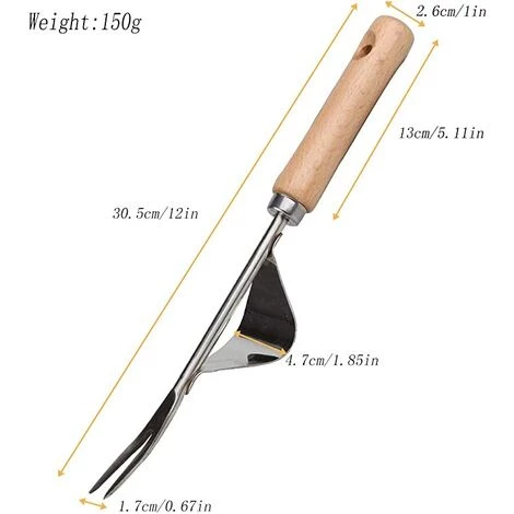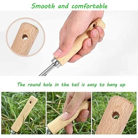 - Poignée en bois dur — Poignée en bois dur confortable, lisse et confortable, adaptée aux longues heures de travail, le trou rond dans la queue est facile à accrocher.