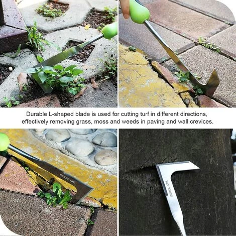 - Solide et durable : l’outil de désherbage des crevasses est fabriqué en acier inoxydable de haute qualité, avec une dureté élevée, une fonction de durabilité et n’est pas facile à rouiller. La lame en forme de L peut être utilisée pour couper le gazon dans différentes directions.