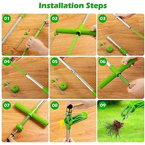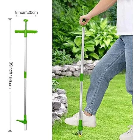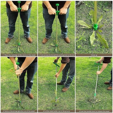 【FONCTIONNEMENT SIMPLE】 : Pour tirer les mauvaises herbes, commencez en position debout, creusez la griffe en acier au centre de la herbe, tournez la poignée pour la retirer, puis tirez sur la poignée supérieure pour libérer la plante.