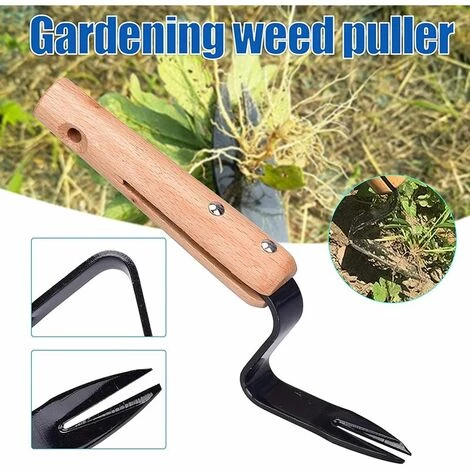 Facile à utiliser: Cet outil de désherbage de jardinage avec une fourche en forme de V étroite peut être facilement insérer dans le sol autour des racines et appuyer sur la poignée pour extraire facilement les racines des mauvaises herbes.