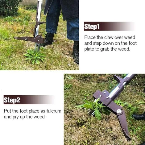 【Facile à utiliser】utilisation facile en seulement 3 étapes. Tout d’abord, poussez la poignée directement dans le sol et laissez la griffe pousser la racine. Ensuite, montez sur la pédale pliante et tirez. Enfin, poussez la poignée vers l’avant et relachez la racine.